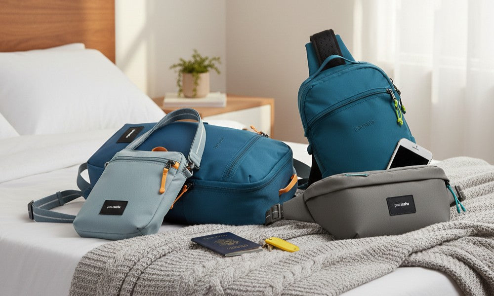 The zippered compartments are secured with smart locking clips to deter pickpockets in crowded markets or public transport. Inside, an RFIDsafe™ blocking pocket ensures your credit cards and passport are immune to electronic skimming, making this the ultimate sidekick for safe, stress-free travel.